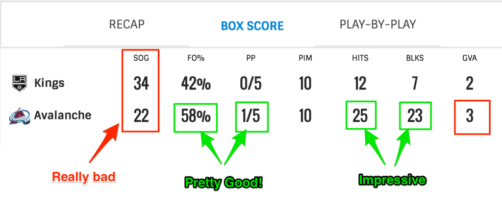 Also, while we’re getting killed on Shots On Goal (SOG) we are looking pretty good in hits, blocks and even faceoffs are getting better. There’s hope.