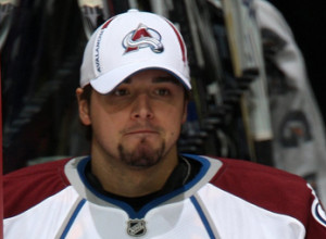 “Tyler Weiman warming up for the Colorado Avalanche. Little did he know later that evening one of his dreams would come true and he would take the ice for his first NHL regular season experience.